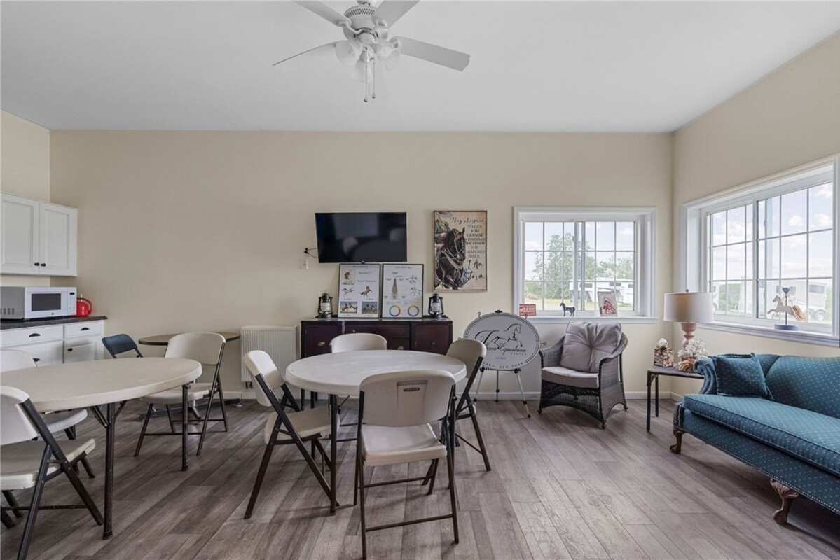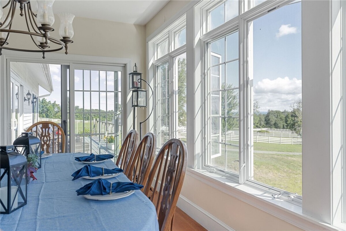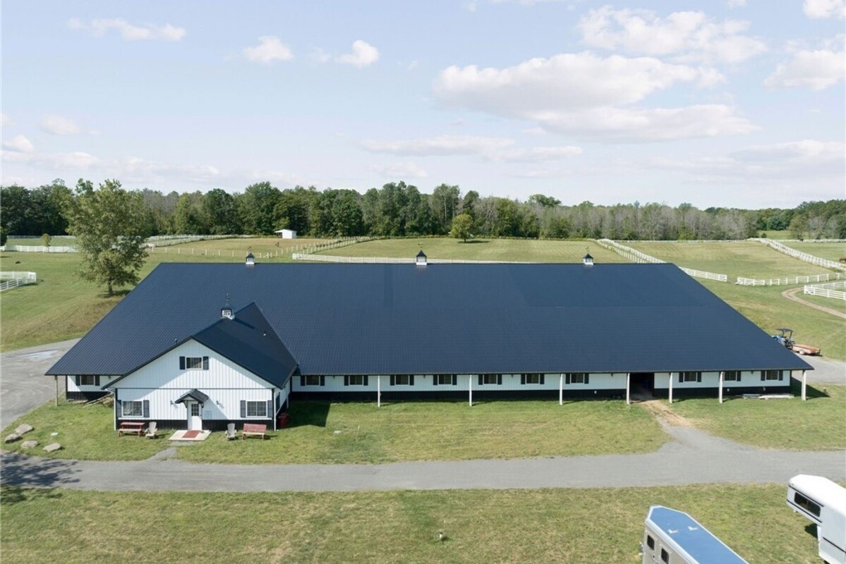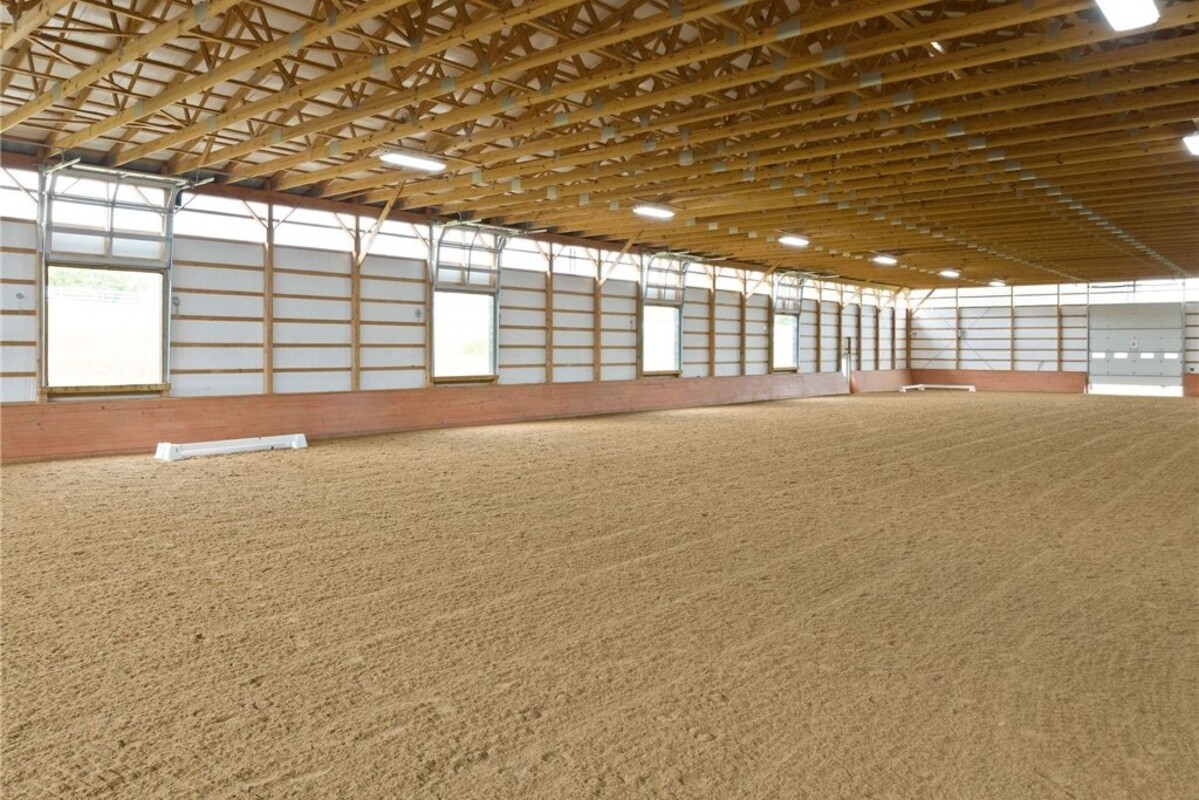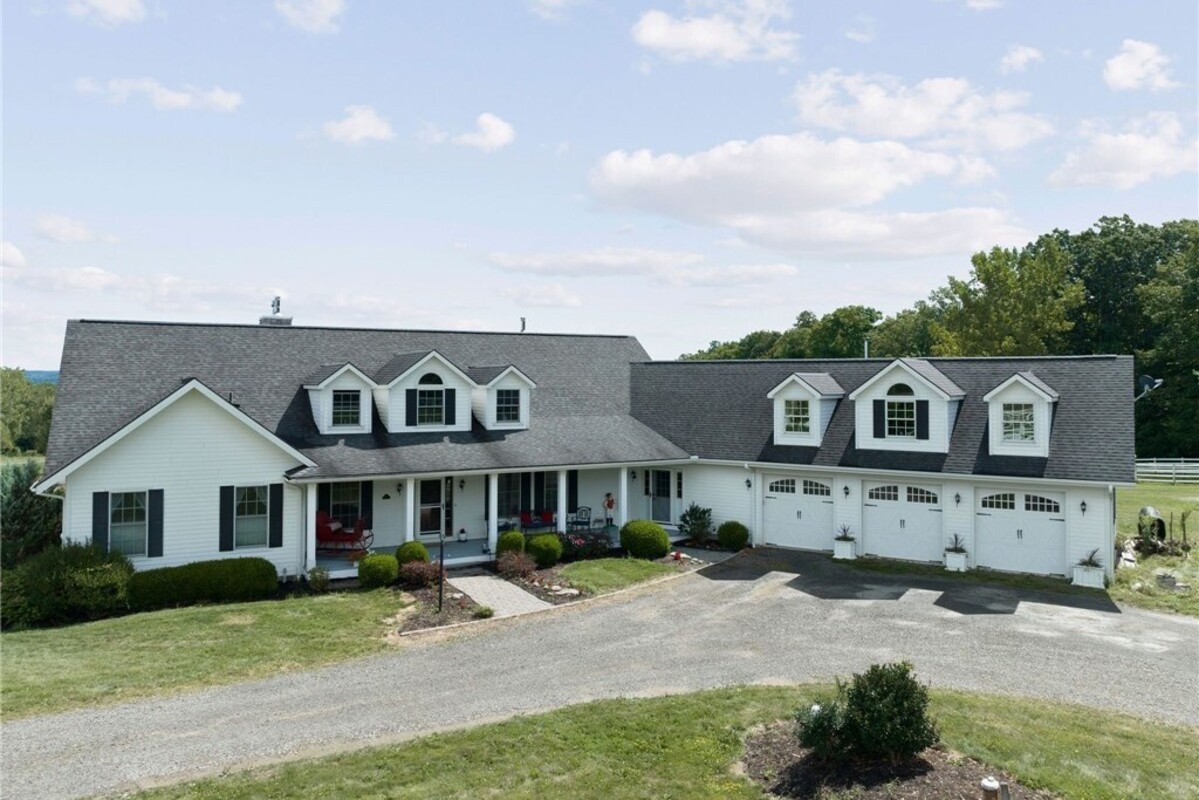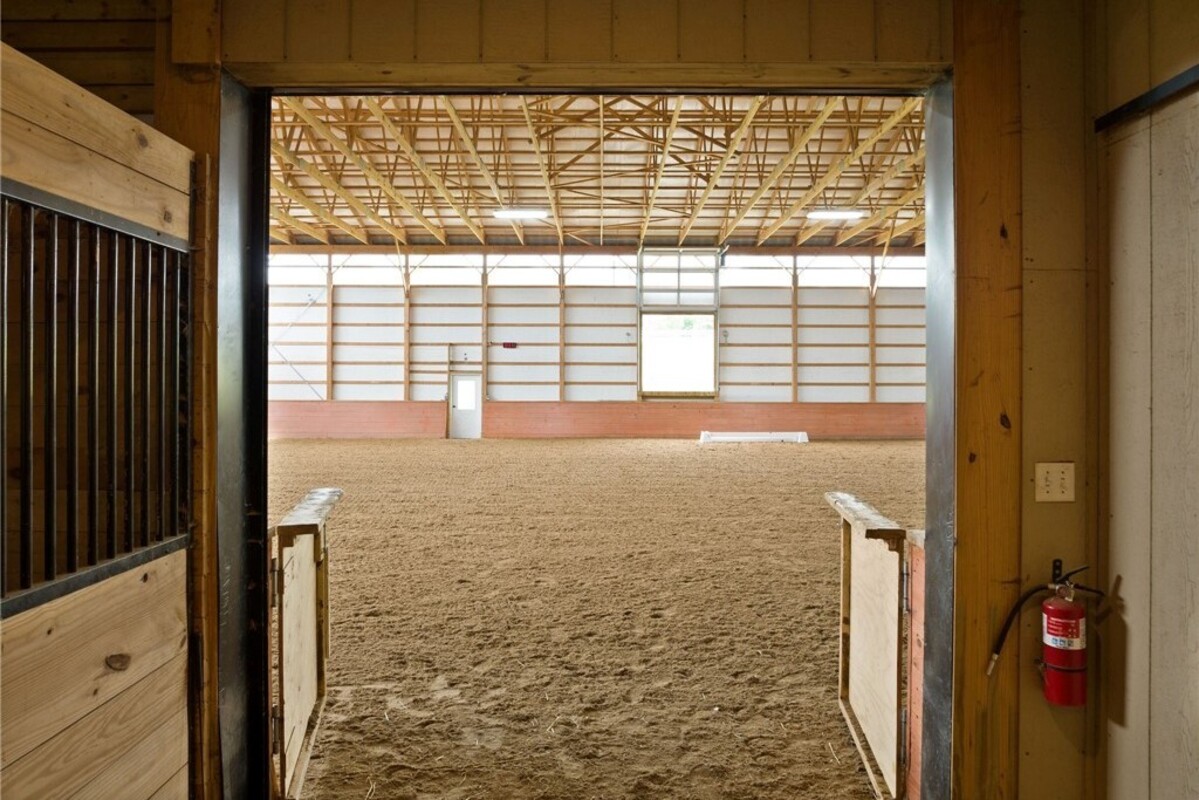 Hidden from view, yet just minutes from Cornell University, this gated equestrian estate offers a setting and opportunity unlike any other. Nestled on 72 terraced acres, a tree-lined lane bordered by white fencing leads to a premier horse facility that combines lifestyle, business, and beauty. Currently home to a thriving boarding operation, this elite center offers endless possibilities for the discerning equestrian. Whether boarding, training, lessons, showing, rehab, rescue, or personal enjoyment, any discipline will thrive here. The centerpiece is a 14 + stall barn with automatic waterers, fans, wash and grooming stalls, plus a heated office, meeting space, and client bathroom. Enjoy year-round riding in the attached 80x205 indoor arena and summer shows in the 100x230 outdoor arena with judge’s gazebo. Eight flex-fenced pastures, four smaller paddocks, and an additional 2-stall barn with storage offer ideal accommodations for horses. The custom 4-bedroom, 3-bath Cape-style home is designed for both comfort and elegance. A great room with living, dining, and cook’s kitchen opens to a wall of Pella windows and glass doors leading to a deck that overlooks the property. A sunroom captures peaceful views of the pastures, while the lower level and spacious attic provide expansion opportunities. The attached 3-car garage with workshop adds convenience and function. The terraced terrain is perfect for conditioning, with space for cross-country jumps and a two-mile perimeter trail. Explore 14 acres of woods and a 10-acre mowed meadow, ideal for riding, walking, or simply soaking in the beauty of the land. This is more than an equestrian property, it’s an unparalleled opportunity to live your passion, run a successful business, and create the equestrian lifestyle you’ve always envisioned, all in a premier location near Ithaca, Cayuga Lake, and the best of the Finger Lakes.