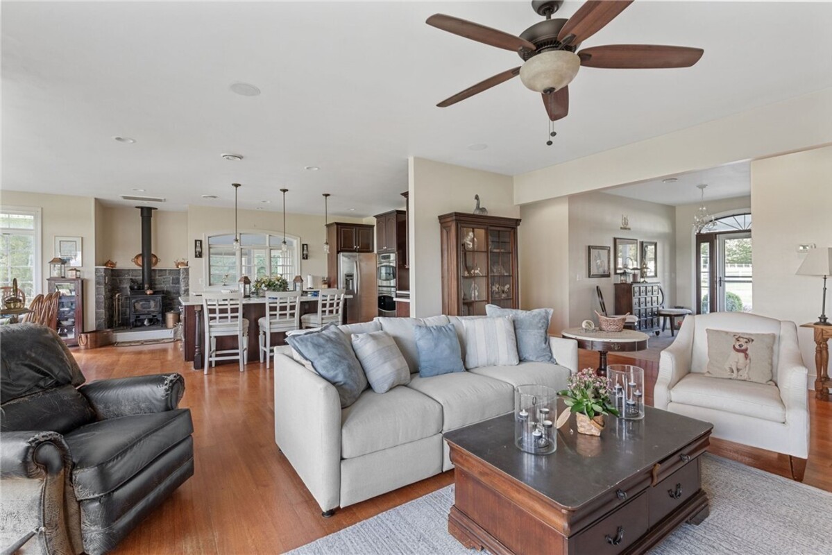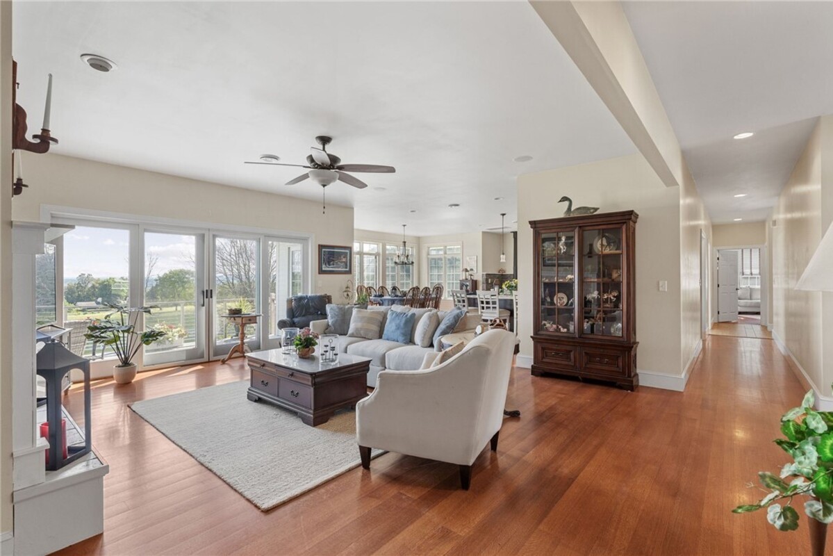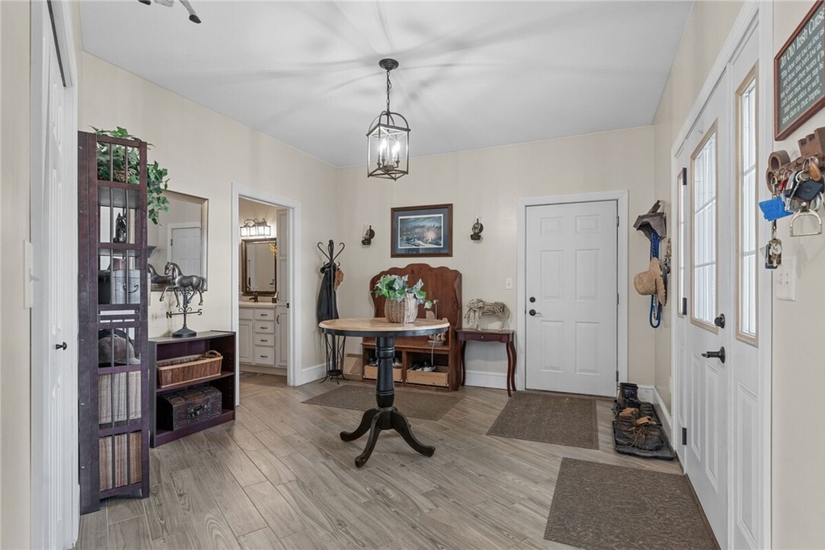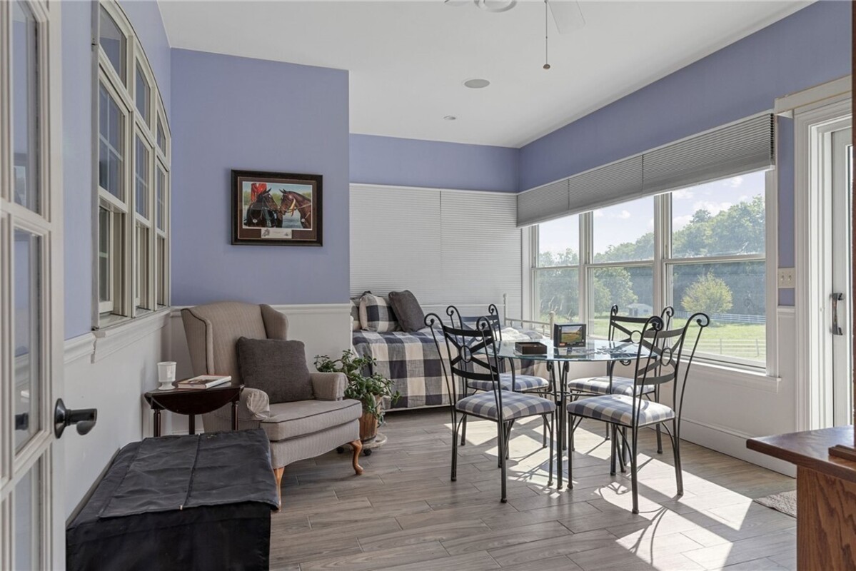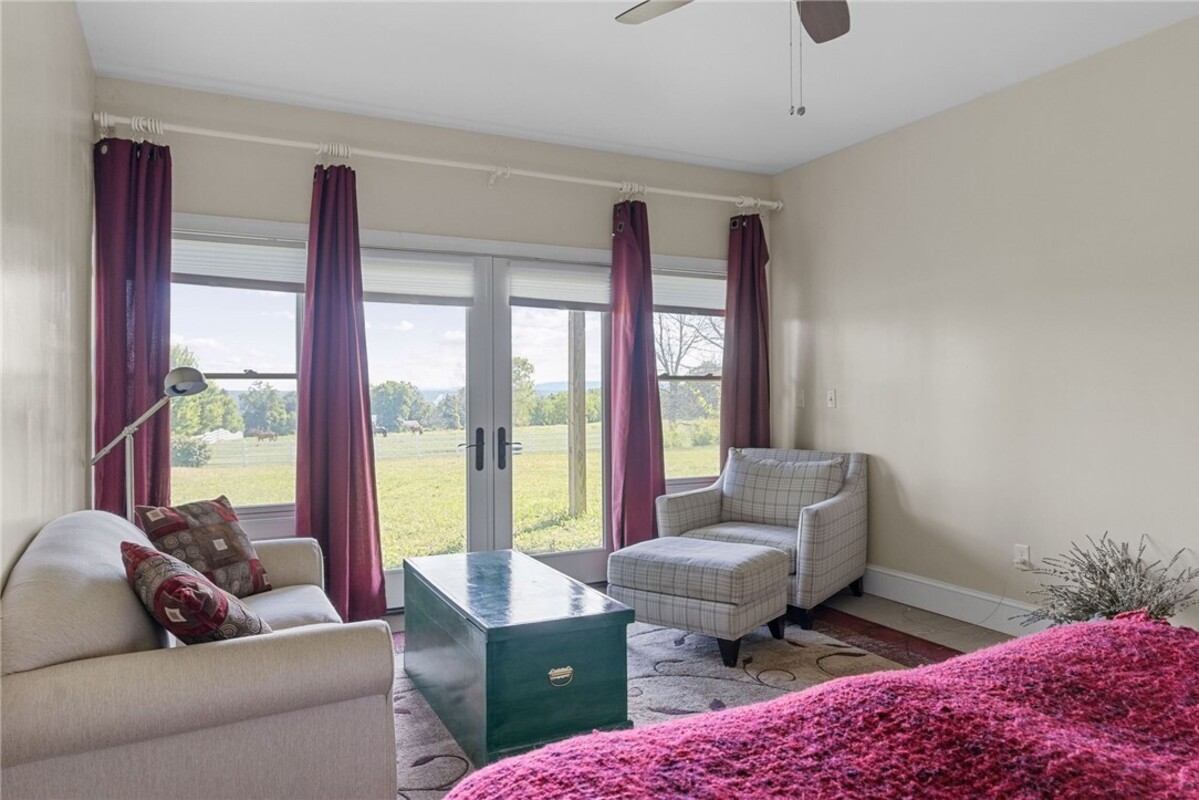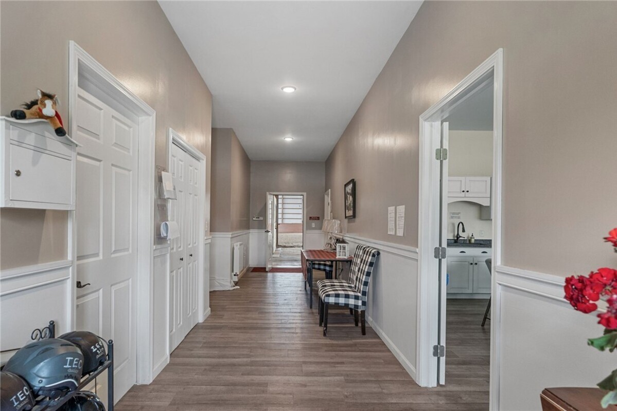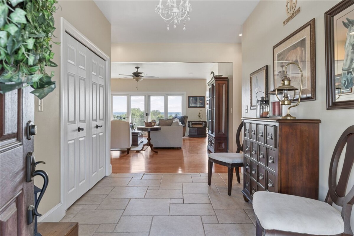 Hidden from view, yet just minutes from Cornell University, this gated equestrian estate offers a setting and opportunity unlike any other. Nestled on 72 terraced acres, a tree-lined lane bordered by white fencing leads to a premier horse facility that combines lifestyle, business, and beauty. Currently home to a thriving boarding operation, this elite center offers endless possibilities for the discerning equestrian. Whether boarding, training, lessons, showing, rehab, rescue, or personal enjoyment, any discipline will thrive here. The centerpiece is a 14 + stall barn with automatic waterers, fans, wash and grooming stalls, plus a heated office, meeting space, and client bathroom. Enjoy year-round riding in the attached 80x205 indoor arena and summer shows in the 100x230 outdoor arena with judge’s gazebo. Eight flex-fenced pastures, four smaller paddocks, and an additional 2-stall barn with storage offer ideal accommodations for horses. The custom 4-bedroom, 3-bath Cape-style home is designed for both comfort and elegance. A great room with living, dining, and cook’s kitchen opens to a wall of Pella windows and glass doors leading to a deck that overlooks the property. A sunroom captures peaceful views of the pastures, while the lower level and spacious attic provide expansion opportunities. The attached 3-car garage with workshop adds convenience and function. The terraced terrain is perfect for conditioning, with space for cross-country jumps and a two-mile perimeter trail. Explore 14 acres of woods and a 10-acre mowed meadow, ideal for riding, walking, or simply soaking in the beauty of the land. This is more than an equestrian property, it’s an unparalleled opportunity to live your passion, run a successful business, and create the equestrian lifestyle you’ve always envisioned, all in a premier location near Ithaca, Cayuga Lake, and the best of the Finger Lakes.